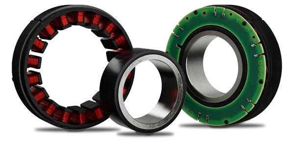 Frameless motors consist of a wound stator and a separate permanent-magnet rotor. They do not include the additional components that are part of a traditional housed servo motor — the motor housing, endbells. bearings, output shaft, cable connectors, feedback device or brake.